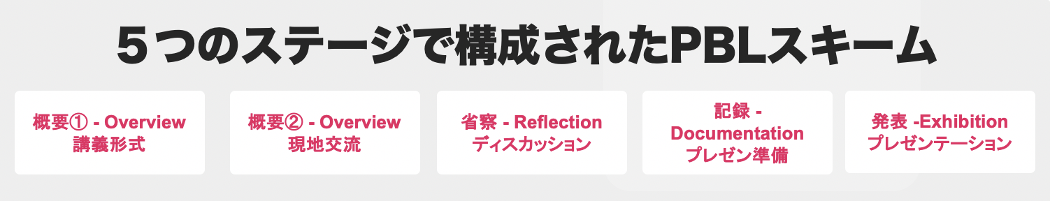 世界の様々な社会問題を知り、関わる現地の人々との交流を通して正答のない答えを探求するプログラムで、弊社のオンラインPBLプログラムでは、5つのステージをおおよそ4週間〜8週間かけて課題を探求し、実際に対象国現地の人にインタビューや交流を通して意見を収集し、その課題背景や意見を収集したうえで、課題解決の糸口を見つけるためにディスカッションにてリフレクションを行います。最終的には、自ら答えを導き出し、その答えについてプレゼンテーションを行うプログラムです。